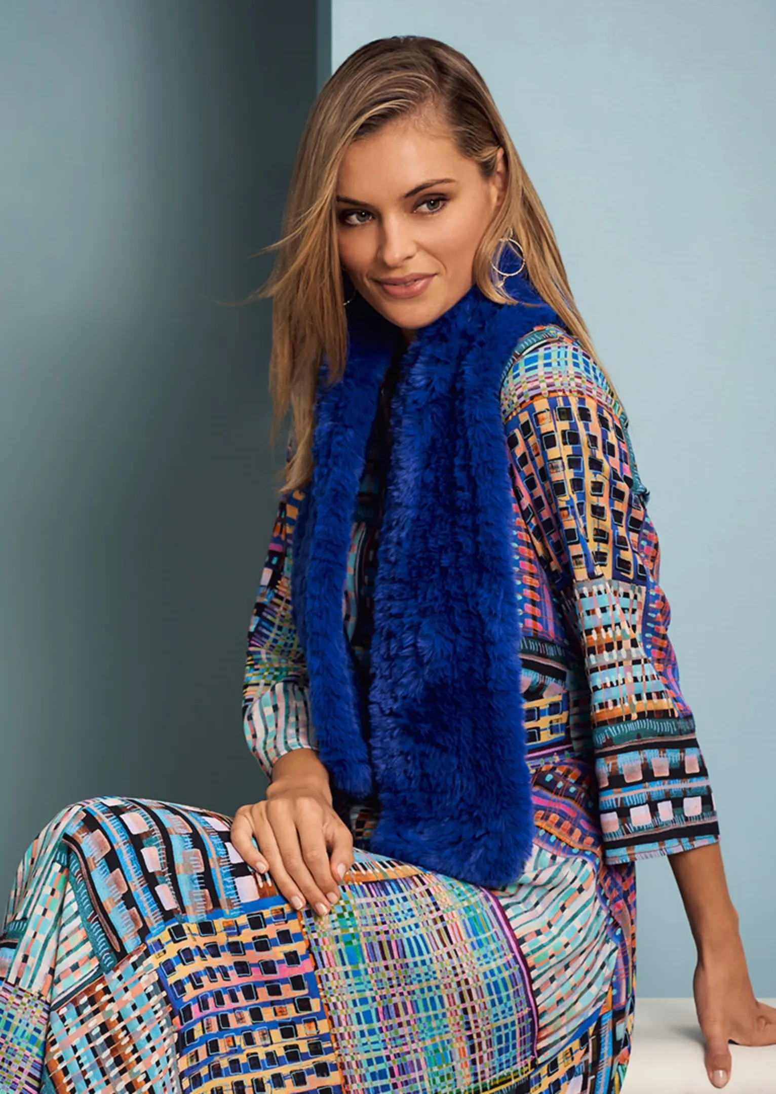 For something bright try the Ribbed Poncho with the Faux Fur Collar, both in electric blue. To tie contrasting colours together we recommend the Electric Paisley Wool Scarf, hand embroidered with bright yarn and swirling paisley patterns.