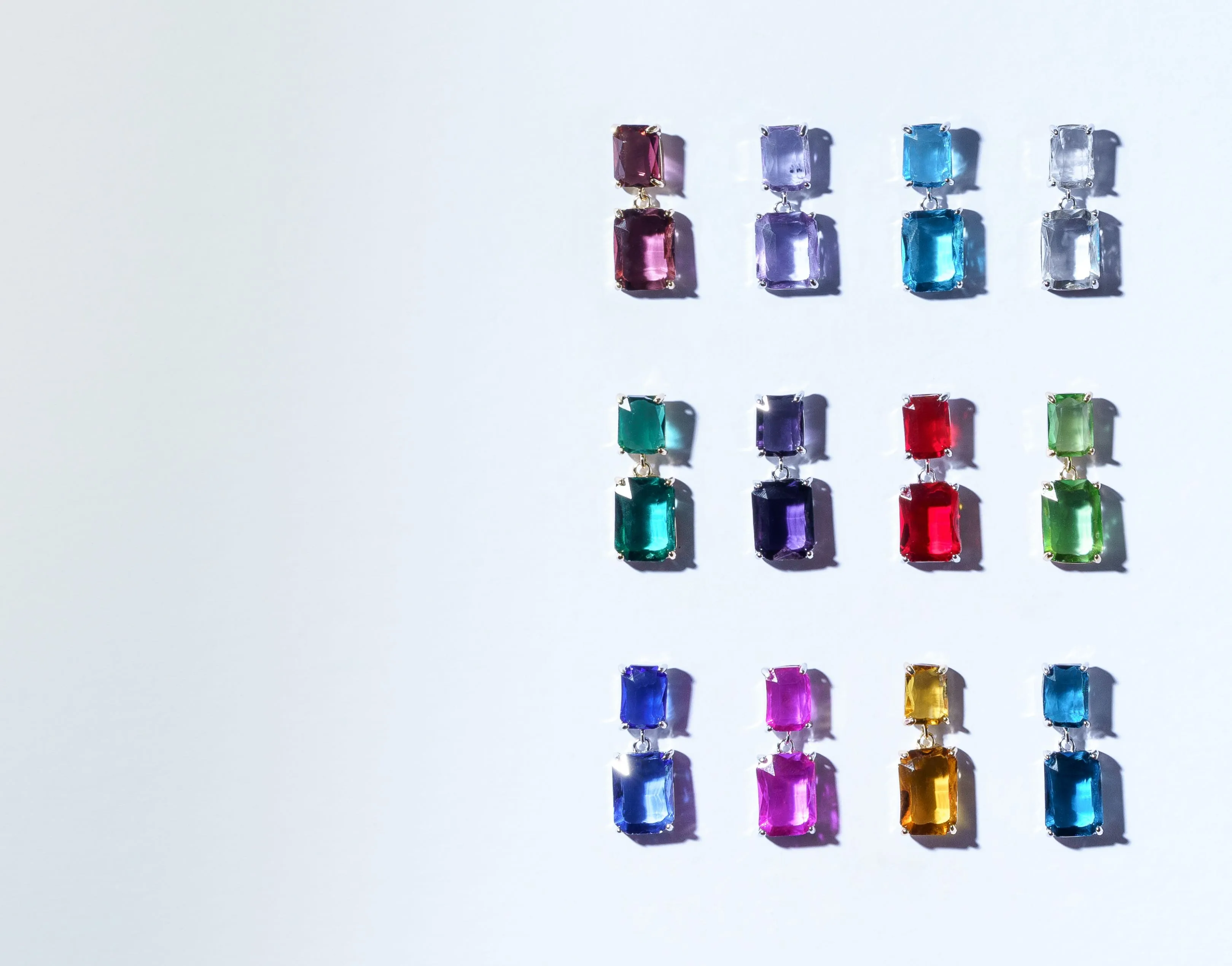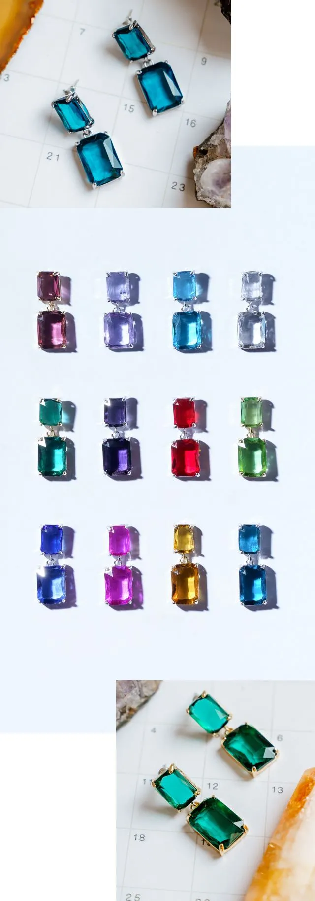 Introducing our deluxe range of birth stone earrings, each with a different gemstone for the month you were born. Crafted with a double-gem drop, set in either a gold or silver metal inlay — discover your colour and shine.