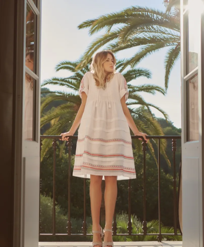 It’s the season for celebration, in coastal tones for Riviera-style occasions. Our Cotton Broderie Dress comes in a blue and white jacquard fabric, perfect for picnics or nights by the beach. Made from 100% organic cotton, this soft and breezy dress will be your summer favori.