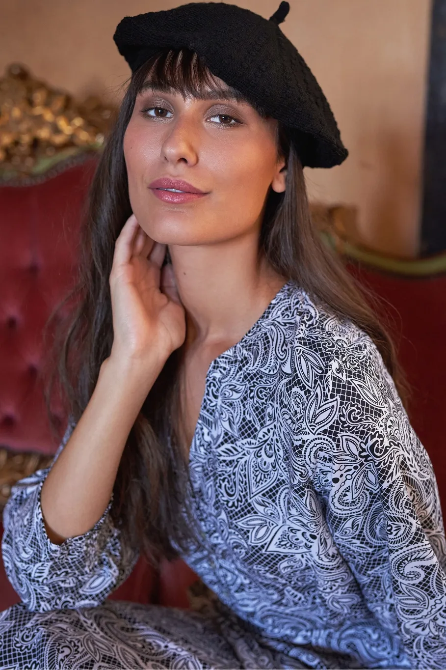 Hand drawn and developed in Melbourne, get swept away by the fine detail of our Embroidered Pintuck Top. Ina is pictured pairing it with our Bengajean® in Black Velvet and Jolie Pearl Heel Boot, très chic!