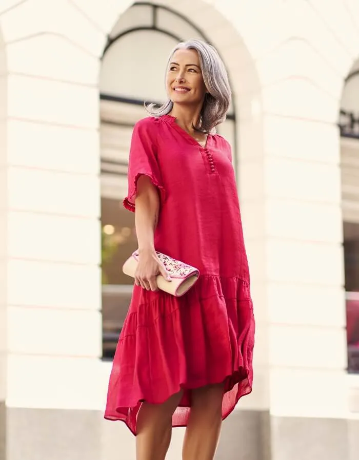 Be transported to the streets of Paris in the vibrant shade of our Linen Silk Ruffle Dress. Crafted from a luxurious linen silk blend, it has been finished with a sophisticated ruffle detail for elevated élégance.