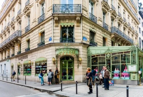 When musing on the sweet and soft hues that make this street an instagram destination, one can easily be reminded of a box of Ladurée macarons. These delightful treats have their own rich history that perfectly expresses l’esprit Français. Did you know, the first Ladurée tea room became a place for women to gather and socialise? And it was Louis Ernest Ladurée’s wife, Jeanne Souchard, who had the idea.