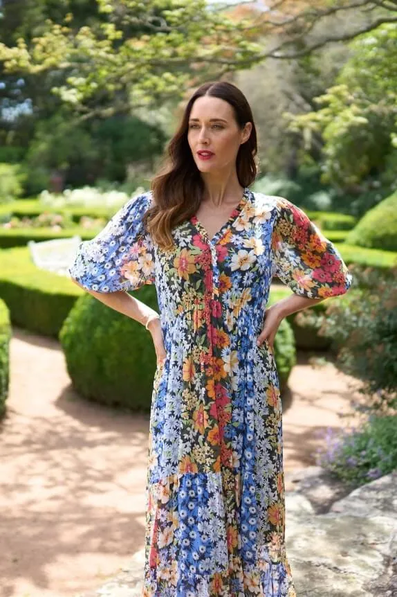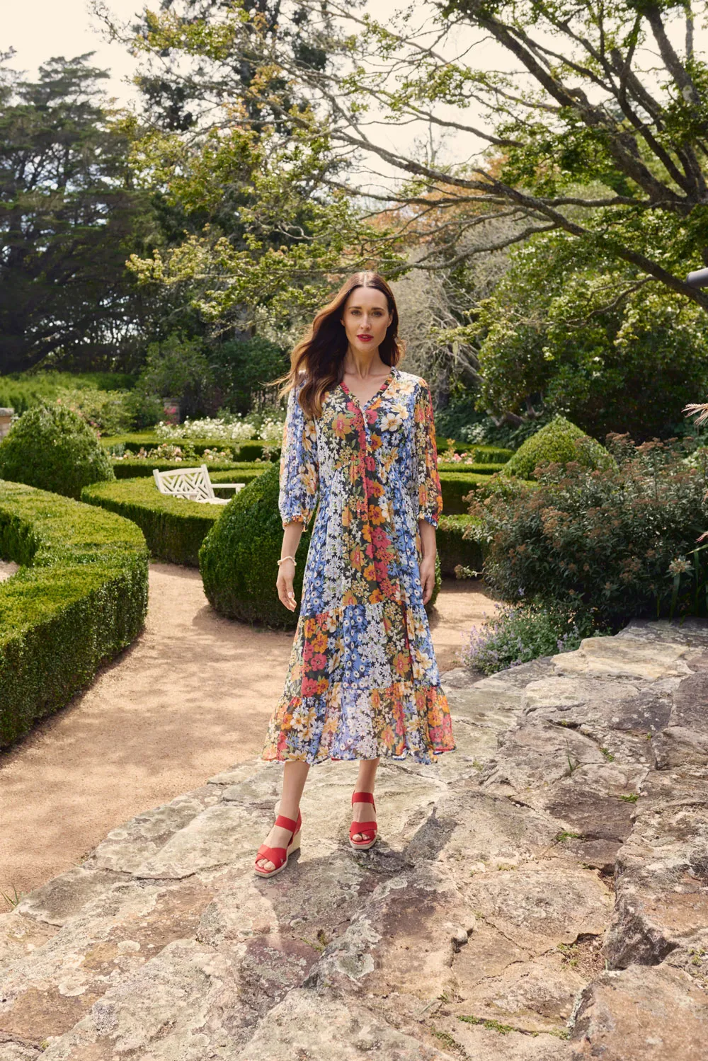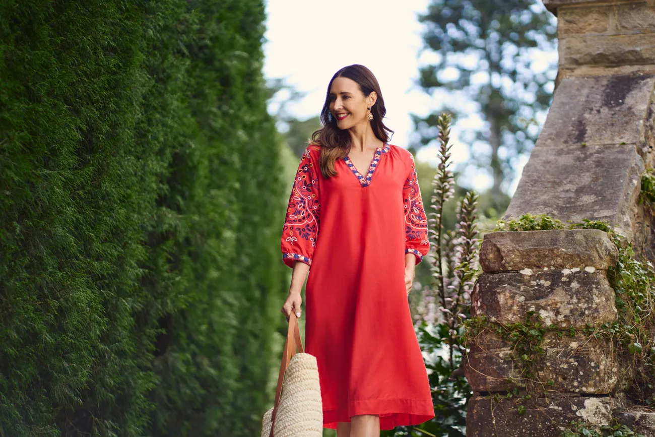 The colours of Rue des Barres dazzle in this striking floral design. We adore the delicate ruffle details and gathered tiers that give this dress le parfait feminine feel. Crafted with 100% viscose for added shimmer and breathability, it’s just right for a night out or a café with friends. Si jolie with our Saint Louise Espadrille!
