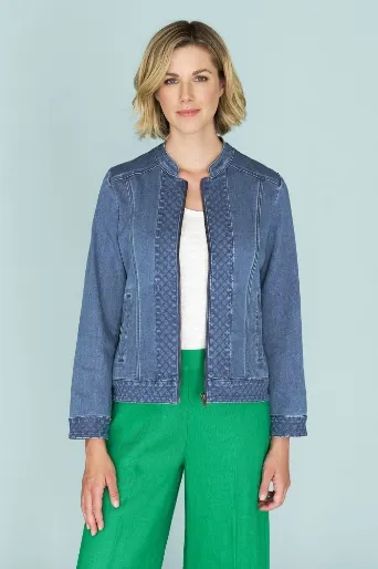 A European-inspired design with all the comfort of stretch fabric. This ideal warm-weather jacket is upscaled with quilted details and an antique gold zip-front. For a colour-curated look, pair it with our ultra-soft Embroidered V-Neck T-shirt with stunning floral embroidery and Linen Wide Leg Pant.